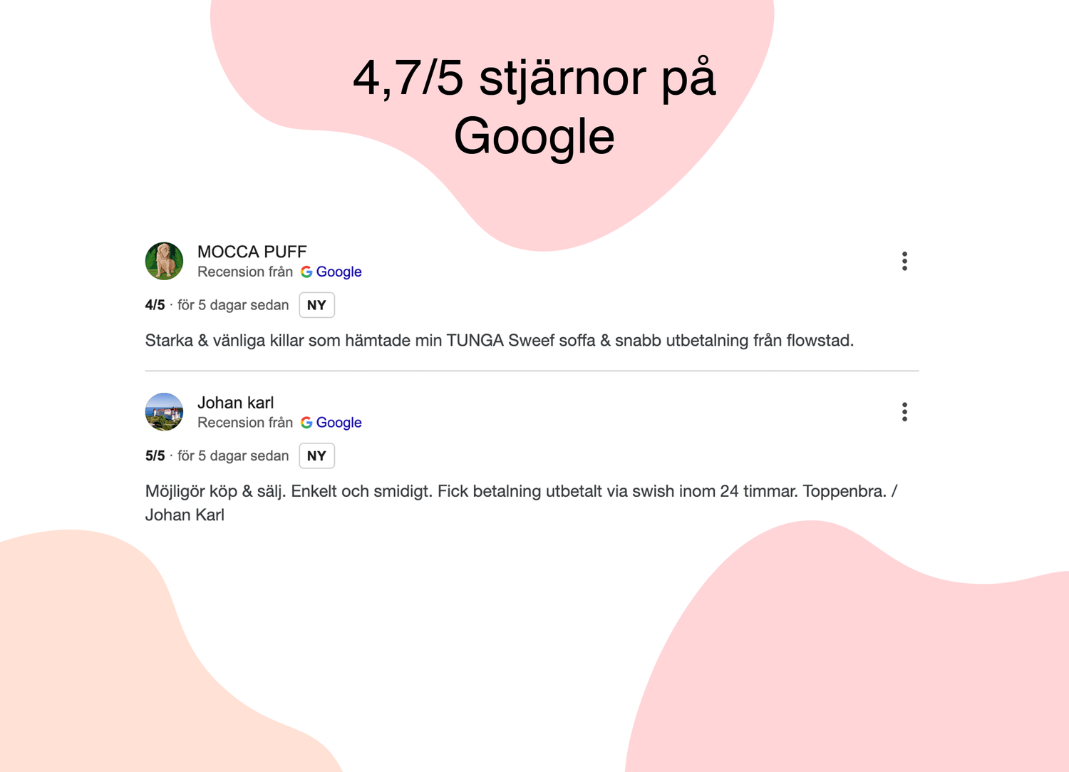 Våra användare uppskattar plattformen – vi har 4,7 i betyg på Google. Tack för ert förtroende!